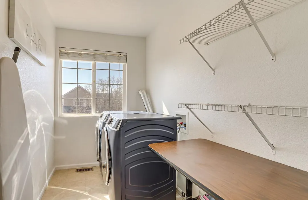 9 Mi To Dia Group Getaway With Easy Denver Access villa includes a bathroom with a shower and a washing machine.